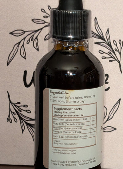 A blend of Dan Shen, Gotu Kola, Milky Oats, Tumeric, and Holy Basil.