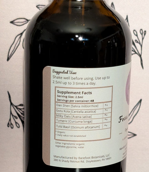 Dan Shen [Salvia miltiorrhiza]*, Milky Oats [Avena sativa]*, Tumeric [Curcuma longa]*,Tulsi Basil [Ocimum afticanum]*, vegetable glycerine*, water